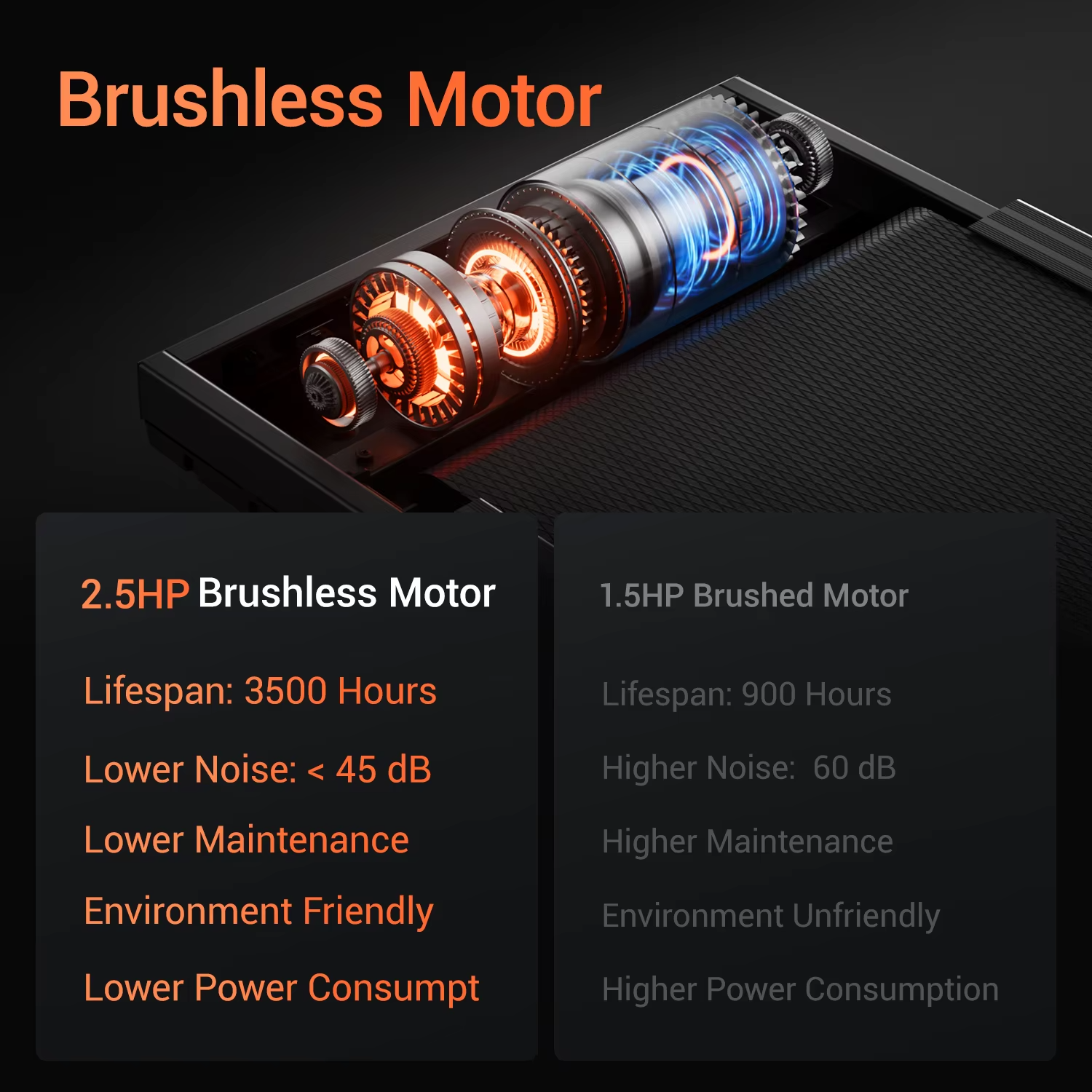 Experience a powerful and quiet workout at home with this 3.0HP Brushless Foldable Treadmill. Designed for safety and comfort, it features dual shock absorption, a spacious running area, a smart console with heart rate monitoring, and a durable double-deck design. Perfect for users up to 300LB, this treadmill delivers an efficient, low-noise exercise experience for the whole family.