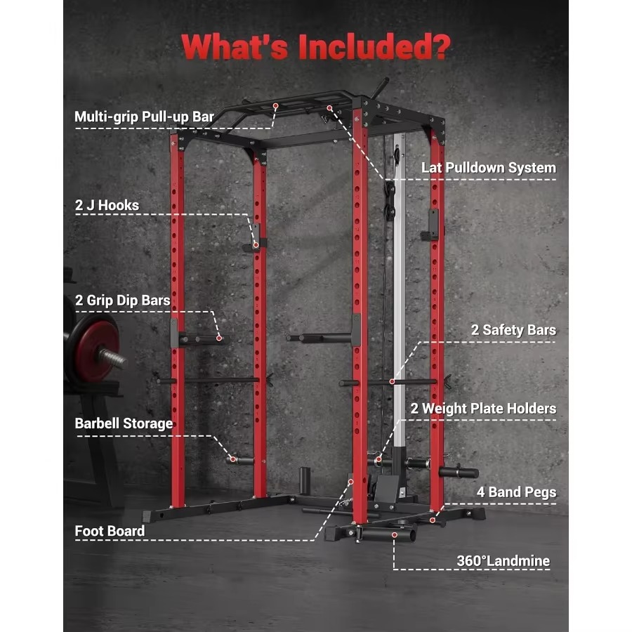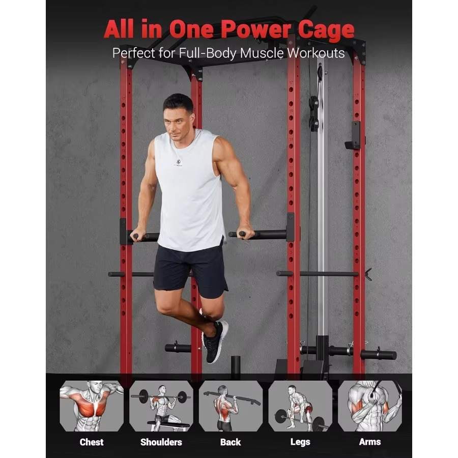 Elevate your home fitness with the Power Cage Home Gym Rack featuring a premium pulley system and an impressive 1200 lbs weight capacity. Designed for strength training enthusiasts, this multi-functional squat rack delivers exceptional durability and versatility, allowing you to perform a full-body workout in the comfort of your home. Constructed from heavy-duty steel, this power cage offers superior stability and safety, making it ideal for squats, pull-ups, dips, lat pulldowns, and a variety of other strength exercises. Whether you’re a beginner or a seasoned athlete, this home gym rack provides all the attachments and features you need to build muscle, improve endurance, and achieve your fitness goals efficiently.